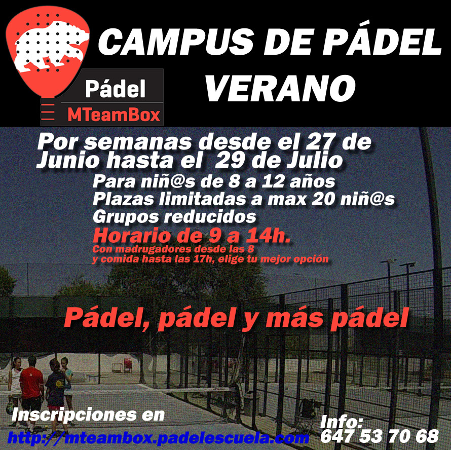 Campus de pádel con actividades físicas dirigidas a aprender el juego del pádel en todas sus facetas y desde todos sus aspectos pudiendo ser niveles desde la iniciación hasta el perfeccionamiento y competición.